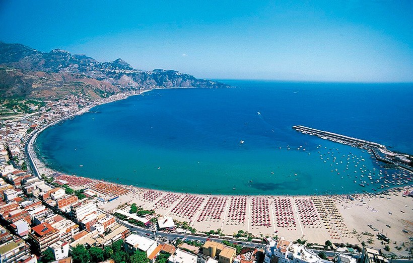 А вот остановиться нам пришлось вовсе и не в Таормине, в местечке поблизости - Джардини-Накос. Между ними - 10 минут езды, но зато там много отелей и отличные насыпные песчаные пляжи, на которых можно с удовольствием полежать и насладиться теплым Ионическим морем и жарким солнцем Средиземноморья. Совместить прогулки по Таормине и пляжи Джардини-Накос оказалось вовсе несложно - повалялись на пляже, искупались, переоделись и отправились гулять по Таормине. Это первоначально мне показалось, что это все неудобно, хлопотно и нервно. На самом деле здесь отлично налажена навигация между этими двумя населенными пунктами, и никаких проблем не возникает.