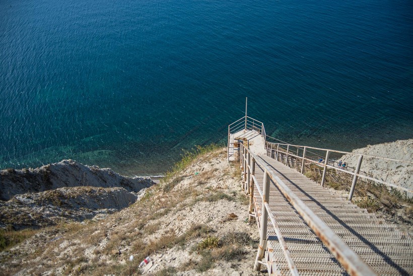 Не обошла я стороной и старенький поселок Супсех или иными словами Су-Псехэ. Здесь отдых вообще на любителя или для активного человека, который может весь день лазить по камням и подниматься по крутым ступенькам, к слову, о них. Ведет до пляжа 800 ступенек, так что не получится приехать и сразу рысью на моречко, нет, придется попотеть, пока доберетесь берега. Есть участки без перил, поэтому будьте осторожны при спуске.