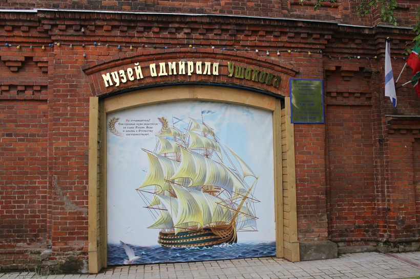 Мы приехали в Тутаев из города морской славы – Петербурга, потому не обошли вниманием экспозиционный комплекс, посвященный Св. прав. адмиралу Фёдору Ушакову и Русскому флоту. Он функционирует с 2012 года, но уже пользуется популярностью. Находится также в старинном здании, где раньше были пожарное депо и полиция. В музее вы ближе познакомитесь с судьбой и флотскими деяниями знаменитого адмирала. Также вам расскажут о морских традициях, самых знаменитых военных баталиях русского флота. Вы сами сможете попробовать завязать один из морских узлов, ударить в рынду, поработать с парусом, узнать о семафорной, звуковой и флажковой азбуке кораблей. Тут действительно на какое-то время можно ощутить себя моряком.