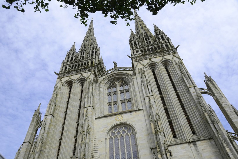 Церковь оказалась собором Святого Корентина (понятия не имела, что такой святой существует, пока сюда не попала, - впрочем, это не самое необычное имя, которое встречалось мне на жизненном пути). Была открыта, спокойно зашли. Вот что мне нравится во Франции в этом плане – очень редко берут плату за вход в церкви, разве что, билеты покупаются в крипту и на башню. Но тут ничего такого не было, свободный вход.