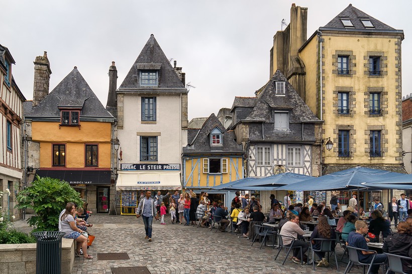 Центр, действительно, в основном сосредоточен вокруг церкви. Отсюда тянутся милые улочки, уставленные старыми домами; опять много фахверка, который мне так нравится своей живописностью и некоторой сказочностью. Магазинчики, кафе, сувенирные – всё тут. Мы неторопливо прошлись, осмотрелись. Да, типичный бретонский город, однако есть в нем свое очарование и неповторимость.