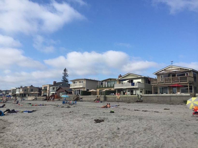 На фото выше - пляж Дель Мар. Это самый дорогой район Сан Диего. Дома тут стоят по 6-7 млн долларов. Здесь же прямо на пляже можно за 300-400$ в сутки снять домик на выходные.