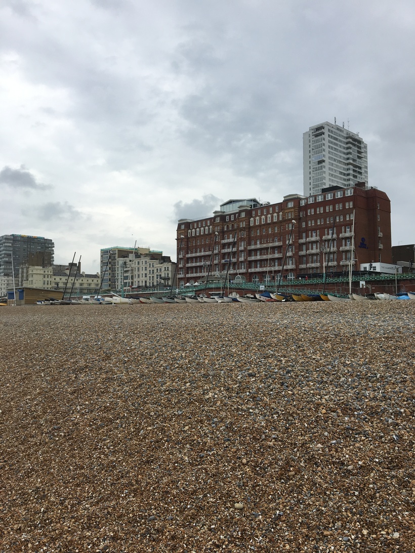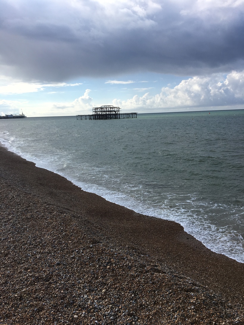 Побережье Брайтона, мелкая галька. Море достаточно холодное, даже летом. Хотя Брайтон и морской курорт и я даже взяла с собой купальник, купаться мне не захотелось, в основном народ просто сидит на гальке, загорает, отдыхает. Некоторые купаются, но я только помочив ноги поняла, что вода очень холодная. Погода конечно а Брайтоне разная, было пасмурно, надеюсь солнечные деньки ждут меня.