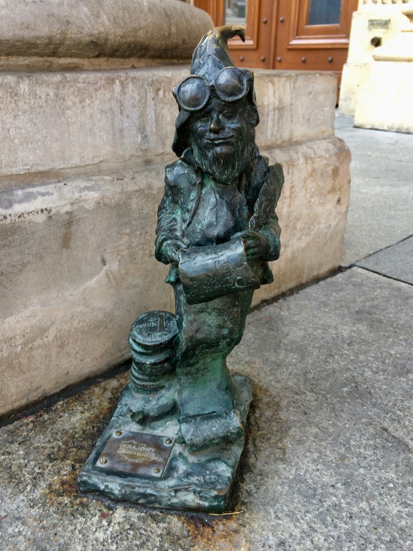 Своеобразная визитная карточка Вроцлава - бронзовые фигурки гномов, разбросанные по всему городу. Высота фигурок приблизительно 30-40 см. Всего гномов в городе более 50, и у каждого ─ свое значение и профессия. К примеру, гном у банка снимает в банкомате деньги, у стоматологии один гном вырывает другому зуб.