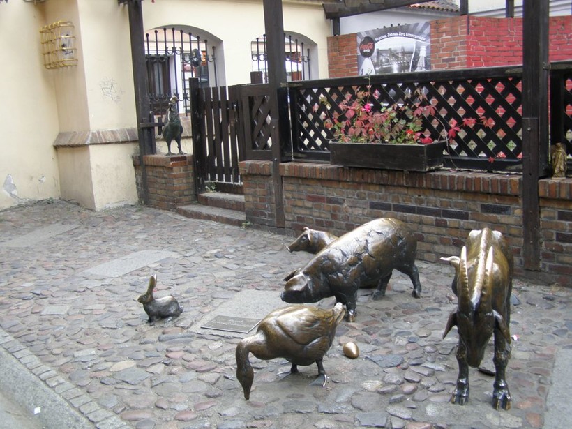 В стиле гномов выполнен и "памятник мясным животным", находящийся во дворике, недалеко от рыночной площади.