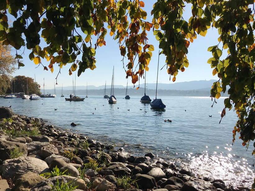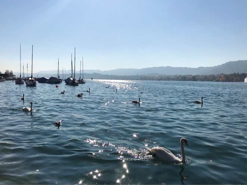 Но, честно говоря, больше всего меня поразило Цюрихское озеро. Мне кажется, что именно у него я провела большую часть своего времени. Набережная озера - излюбленное место и жителей города, и туристов. Вот сидишь на берегу, смотришь на лебедей, которые плавают по озеру, на яхты и паромы, припаркованные вдоль, любуешься на швейцарские Альпы и понимаешь, что время как будто остановилось. Так хорошо, что не хочется никуда бежать или идти, хочется отменить все свои планы и просто наслаждаться великолепными видами. Посмотрите фотографии, и всё будет понятно без слов. Набережная переходит в парк, а затем и в небольшой пляж. В парке есть несколько оригинальных памятников, находятся лавочки и места, где можно перекусить. Здесь проводят фестивали, устраивают рынки, ставят карусели. Поэтому здесь всегда многолюдно.