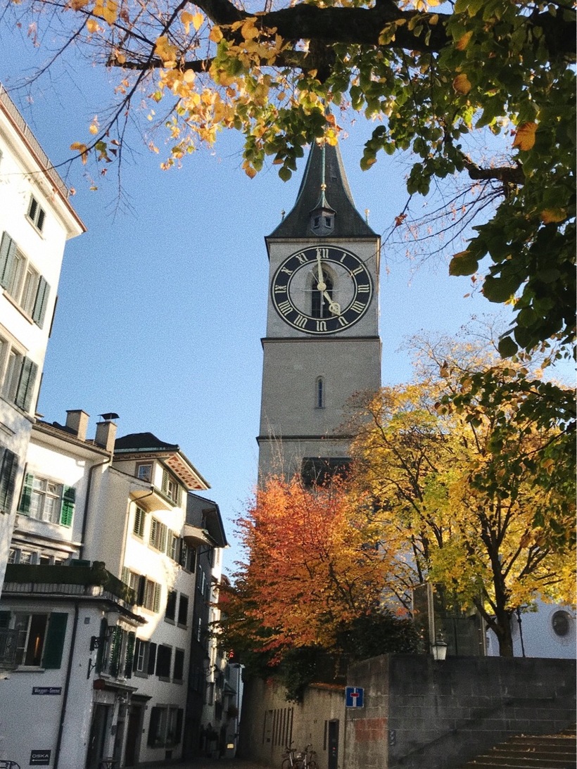 Гроссмюнстер, Фраумюнстер и церковь Святого Петра. Фраумюнстер – бывшее женское аббатство, в которое обязательно надо сходить, чтобы посмотреть на витражи Марка Шагала (кстати, за свою работу денег художник не взял), Гроссмюнстер – самый большой собор Цюриха, в нем проходят органные концерта, церковь Святого Петра – старейшая церковь города известная большим размером своих башенных часов.