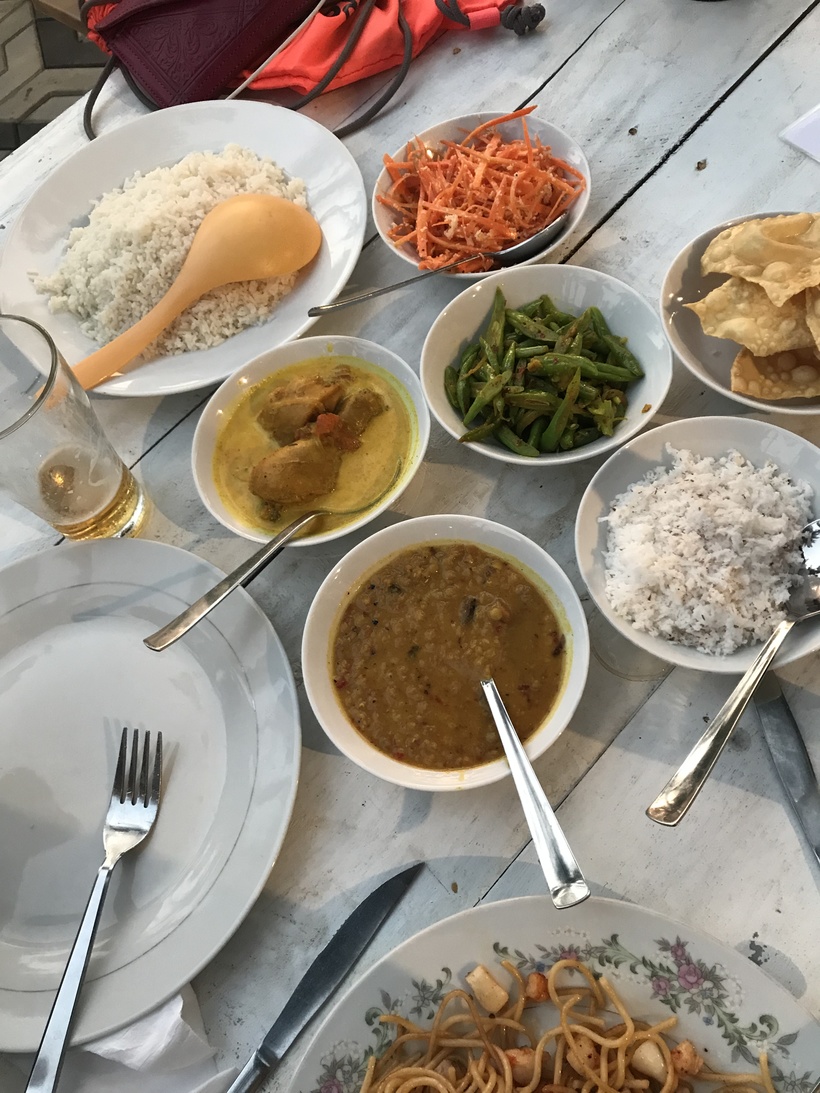 Хорошо, что я, черт возьми, накануне вечером погуглила традиции в ланкийских семьях. У ланкийцев не принято садиться за стол вместе с гостями. Они сажают вас за стол, вы кушаете, а они сидят на диване и смотрят на вас. Как только ваша тарелка становится хоть наполовину пустой, шустрый хозяин подбегает и пополняет ее снова. Есть в тишине, когда на вас смотрят в четыре глаза, мягко говоря стеснительно. Нам хотелось провалиться сквозь землю. Про еду даже и не буду рассказывать. Это традиционный рис, нарезанные ананасы, смузи, луковые колечки в сахаре(!) и что-то острое. На завтрак!