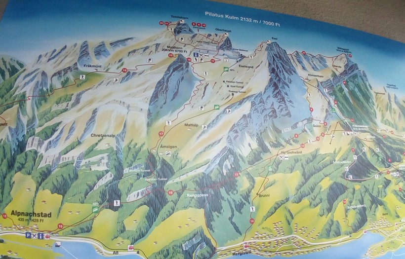 Эта альпийская вершина высотой 2132 метра тоже окружена легендами. Говорят, там не один раз видели драконов, а шум их крыльев доносится из пещер и сейчас. Мне повезло – я увидела одного из них, правда на детской площадке; а еще красный дракон стал фирменным знаком Пилатуса, и его можно часто увидеть где-нибудь нарисованного.