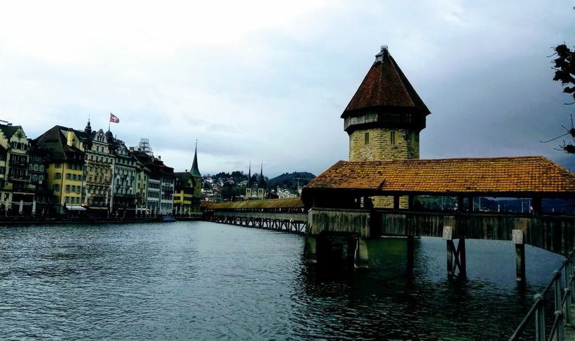Этот уникальный крытый мост является еще и картинной галереей, под коньком крыши находятся 111 треугольных картин, рассказывающих об исторических событиях Швейцарии, правда, после пожара 1993 года, сохранилось меньше трети этих работ. Гуляя по нему, не знаешь куда смотреть, то ли на картины, то ли на прекрасные виды города.