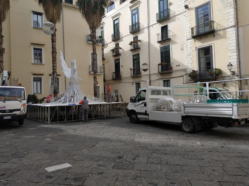 Что меня удивило в Салерно, так это подготовка к Новому году. Мы были здесь 15 октября, и уже в это время коммунальные службы начинали потихоньку готовиться к празднику. В центре уже устанавливали декоративные снежинки и фигурки ангелов. Среди пальм и на палящем солнце мне это выглядело странно… Если подготовка такими темпами будет продолжаться и дальше, то к Рождеству и Новому году Салерно приобретет сказочный вид.