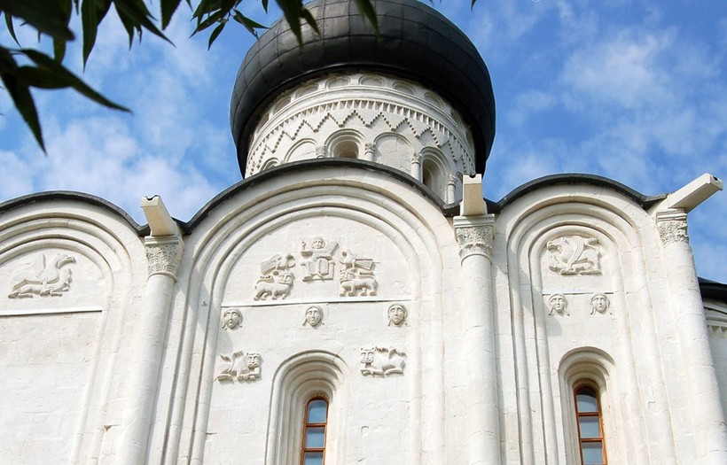 Здесь есть и образ псалмопевца царя Давида в окружении животных, и богатые орнаменты, и ряд рельефов девичьих ликов, опоясывающих все три фасада храма.