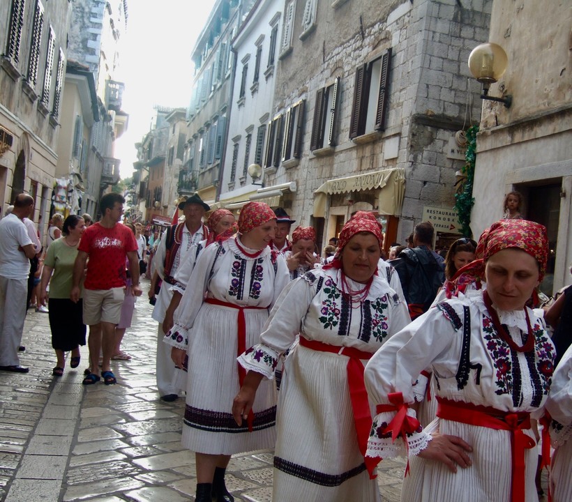 В один из наших приездов в Пореч мы оказались свидетелями открытия какого-то этнического конкурса. По улицам под музыку шли коллективы в национальных костюмах. Это было поистине захватывающее зрелище. Удалось сделать много красивых фотографий, которыми не могу не поделиться.