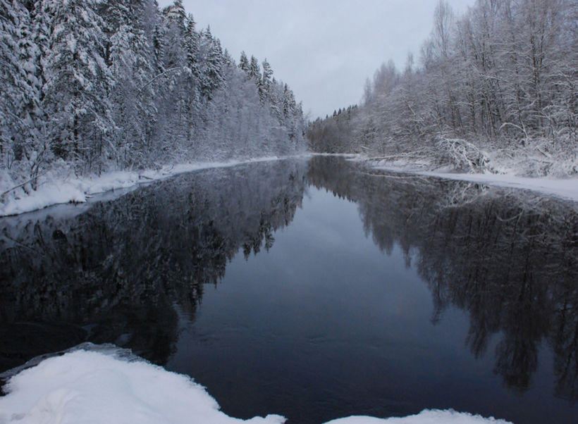 Река Суна, на зеркальной поверхности которой отражались заснеженные деревья, оставила ощущение невыразимого величия и торжественности.