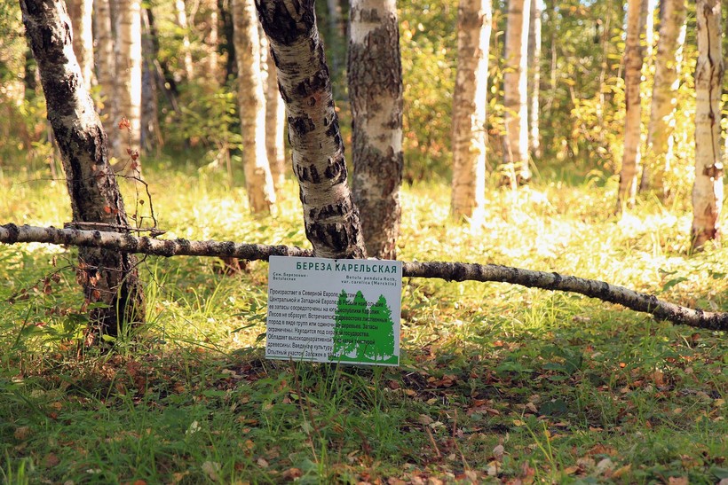Дендроколлекция насчитывает более 40 растений. Кстати здесь вы можете увидеть знаменитую карельскую березу.