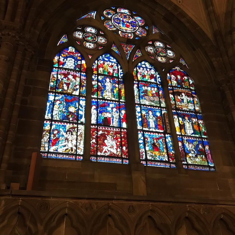 Страсбургский собор расположен в центре города и является его визитной карточкой. Снаружи собор поразил своим величием. Внутри оказалось много витражей и различных скульптур, а также гобеленов на церковные темы. Там же находятся и астрономические часы - ежедневно в 12:00 можно посмотреть фильм про них. К сожалению, это кино будет понятно только тем, кто знаком с французским или немецким языком.