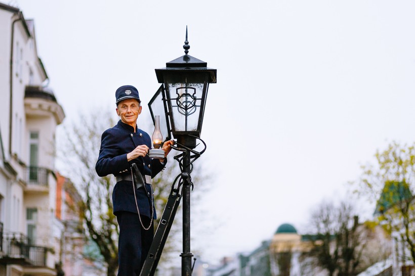 - Ну и Брест одной лишь крепостью не ограничивается. Вы, например, знали, что фонари на улице Советская каждый вечер зажигает живой фонарщик. Время, когда это происходит, указано на больших часах, расположенных в начале пешеходного участка улицы. Не так давно я-таки имел удовольствие быть свидетелем ритуала зажжения фонарей. Фонарщик, кстати, местная знаменитость, и после окончания основной части своей работы он охотно фотографируется со всеми желающими.