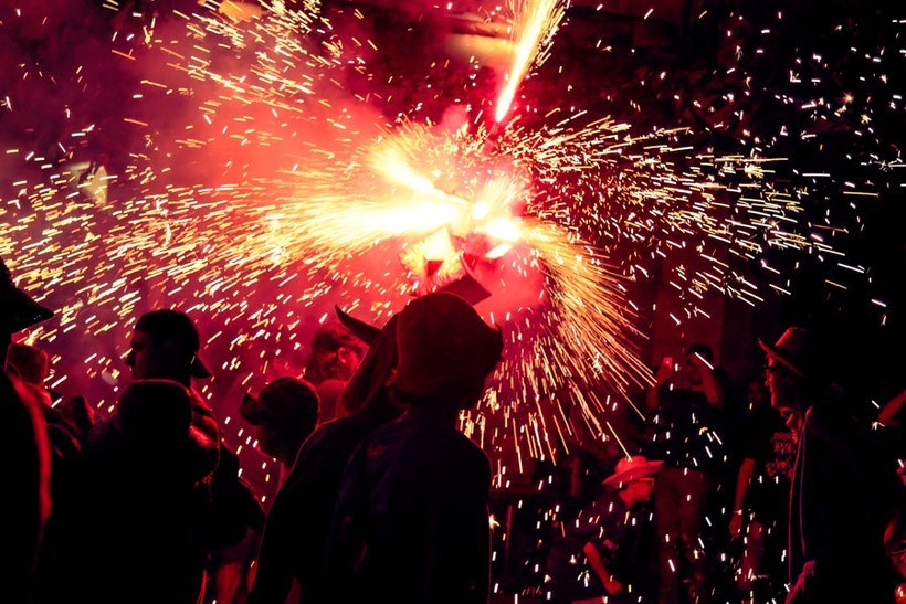 Позже, когда шествие кукол закончилось, на улочках появляются молодые люди, которые раскручивали специальные устройства и из них во все стороны сыпались искры, как из бенгальского огня. Это довольно страшно, и участники праздника с криками разбегались в разные стороны. Происходила этакая гонка по старому городу. Мы тоже захотели немного адреналина и побегали вместе с шумными испанцами.