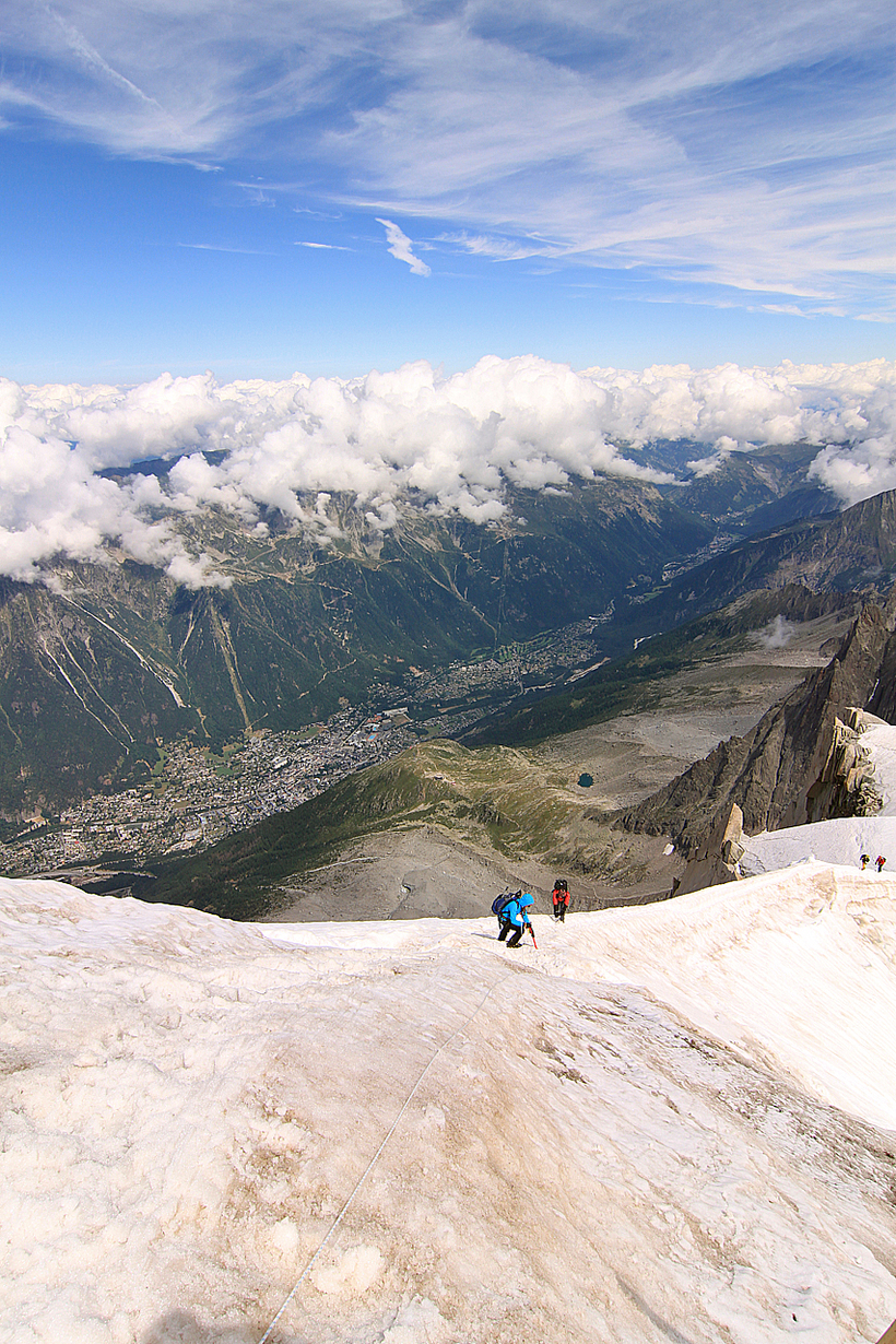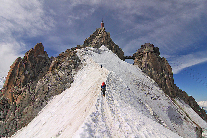 Вторая канатка значительно выше, она позволит вам подняться на Эгю-дю-Миди, на высоту более 3800 м. Со смотровой площади Монблан виден, как на ладони, кажется, что до него рукой подать. Но это не так. В одну из поездок по причине непогоды мы провели четыре незабываемых ночи на седлах Такул и Мон Моди, добираясь до вершины. Но это достойно отдельного отчета.