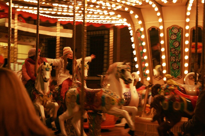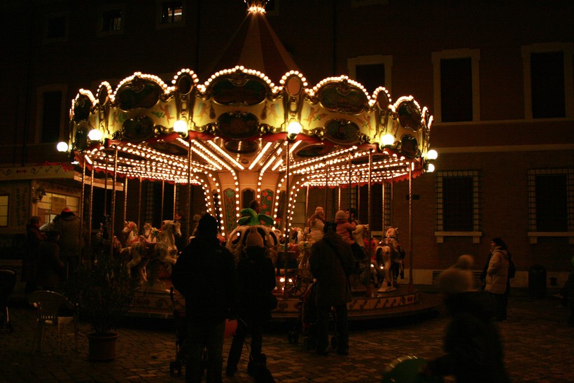 Дальнейшая прогулка и вовсе была волшебной. Поворачиваем мы за угол, а там... карусель. Самая настоящая карусель – между старинными домами, откуда расходятся узкие улочки, расписная, с лампочками! Дети от восторга кричат, музыка ненавязчиво играет... Это просто сказка какая-то. Теперь, когда вспоминаю о Равенне, перед глазами сразу вначале именно эта карусель.