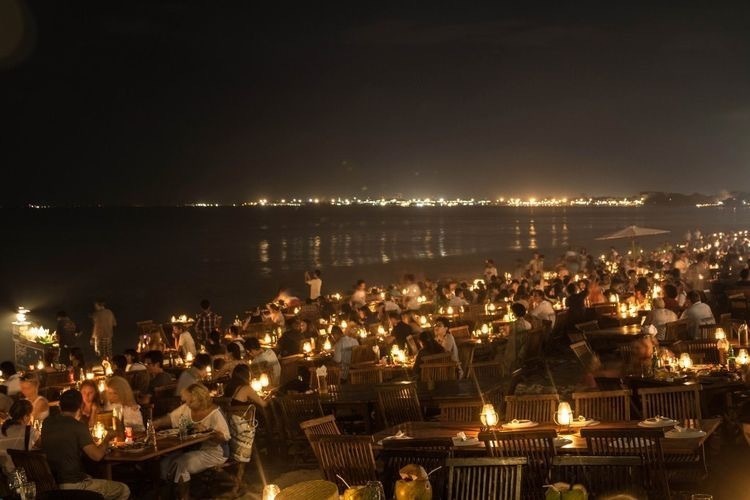 Очень широкая пляжная полоса, и вдоль берега стоит целая линейка ресторанов различного дизайна и одинаковой ценовой политики, вот честно, по ценам даже не смотрите, садитесь где будут места и вам приглянется обстановка. Однако все эти рестораны внутри пустые практически, потому что они выносят дополнительные ряды столов на пляж и расставляют свечи и играет музыка , и господи, как же классно тут посмотреть закат ! было бы!