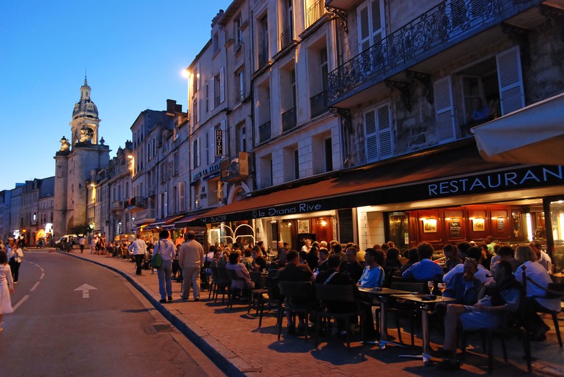Вокруг порта тянутся широкие улицы, где нижние этажи домов полностью отданы ресторанам и магазинам. В одном таком ресторане мы посидели полчаса; так как торопились, взяли лишь закуски, и это было очень вкусно! В сезон в Ла-Рошели всегда подают устрицы, которые выращивают здесь же неподалеку, на острове Ре. Именно там всегда больше всего туристов, их поток ослабевает только, когда погода начинает портиться.