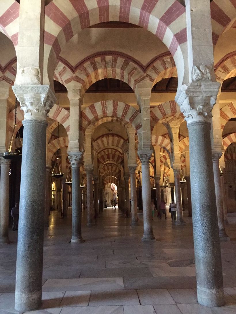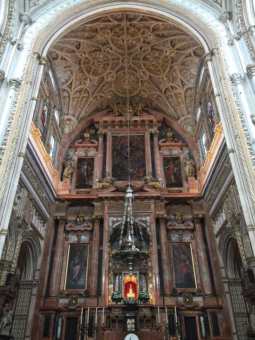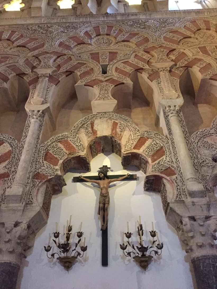 Когда мечеть переделывали в католических собор, перестроили лишь небольшую часть в середине, под алтарь. Остальное осталось без изменений, точно так, как и было в мечети. В результате получилось причудливое сочетание исламского и христианского.