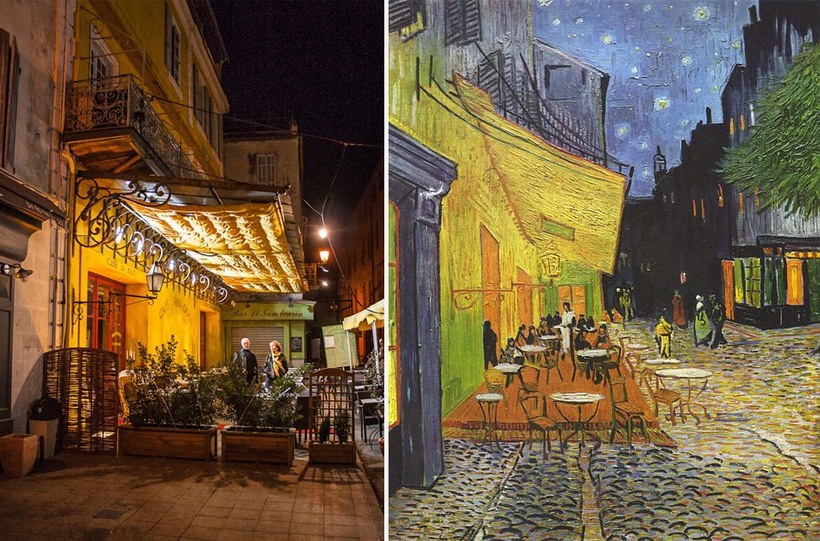 - Исторические места, связанные с Ван Гогом оформлены в едином стиле: рядом с местом (кафе со знаменитой картины «Ночная терраса кафе» или больницей, где художник получал лечение) стоят стенды с репродукциями картин мастера и рассказом о нем. Интересно, что в Арле нет ни одной картины Ван Гога, зато есть фонд его имени, а в городском саду стоит экспрессивный и запоминающийся памятник.