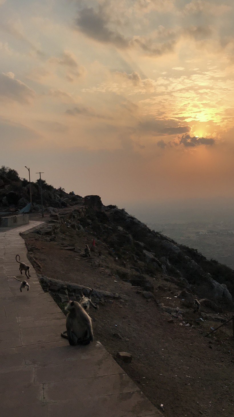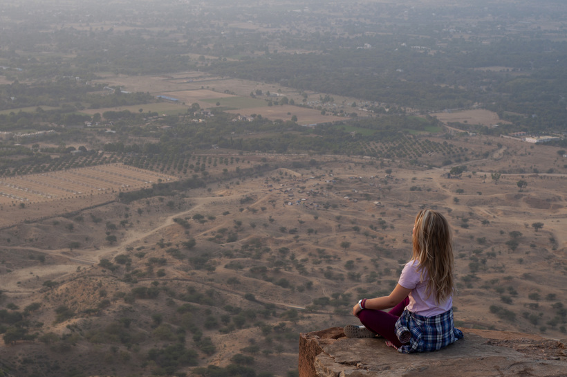 На закате или рассвете отправляйтесь в храм Савитри Мандир (Savitri Temple). Он расположен на вершине высокого холма. Подняться можно либо пешком, либо на канатной дороге. Сколько стоит канатка сказать не могу, так как я ходила пешком. Путь в одну сторону занял примерно 20 минут. ОБЯЗАТЕЛЬНО берите с собой водичку, так как лестничные подъемы высокие, получается хорошая силовая тренировка.