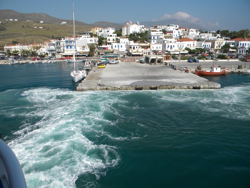 Из Афин в Андрос добраться оказалось очень просто: каждые полчаса из греческого порта Рафины отправляется паром в сторону острова. Время в пути около двух часов, стоимость - 19 евро в одну сторону.