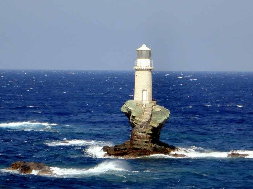 Здесь же расположена и визитная карточка Андроса, по которой остров узнают во всем мире — маяк Турлитис. Что интересно, это единственный маяк во всей Греции, построенный прямо в море. Самое красивое сооружение, которое я видела. С этого момента я влюбилась в Андрос еще сильнее!