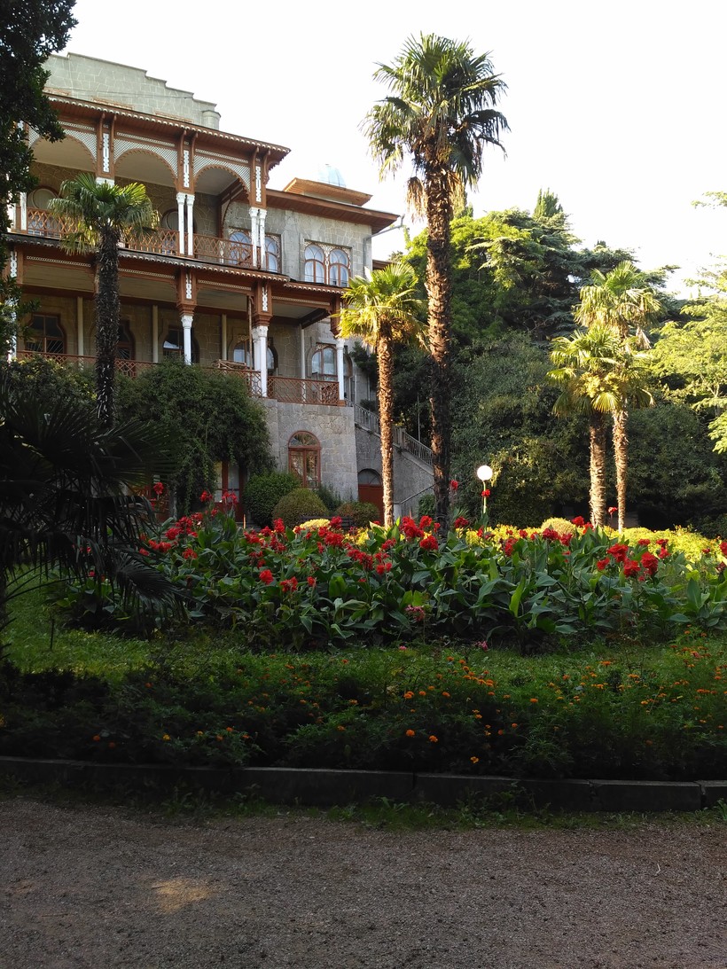 около особо раритетных растений стоят таблички с названием и возрастом дерева. Сама усадьба каменная с деревянными декоративными элементами, достаточно неплохо сохранившаяся, внутрь попасть не получилось, да, по-моему, и нельзя. Вполне хватает вида снаружи.