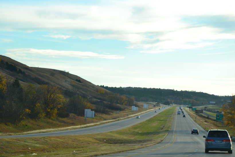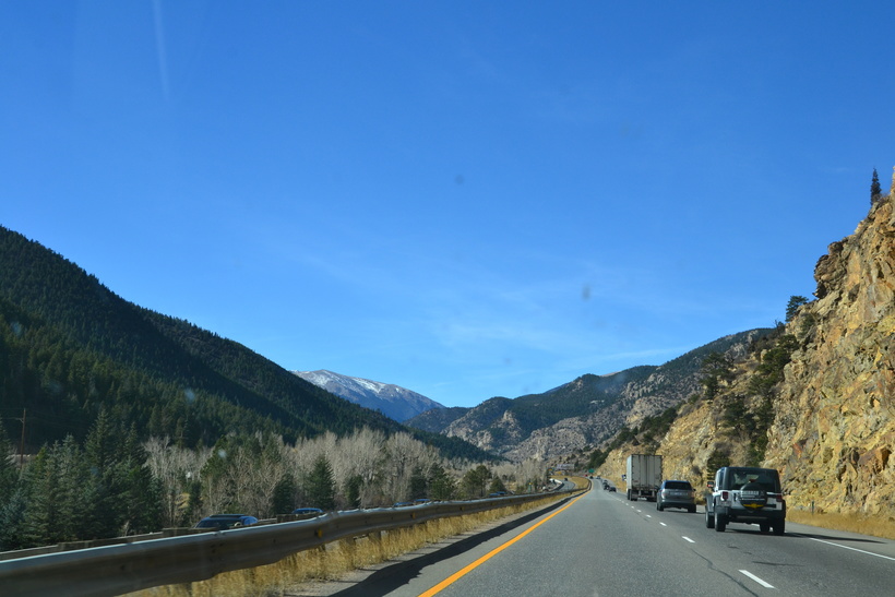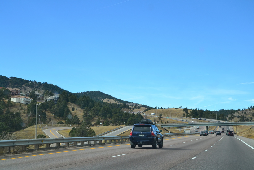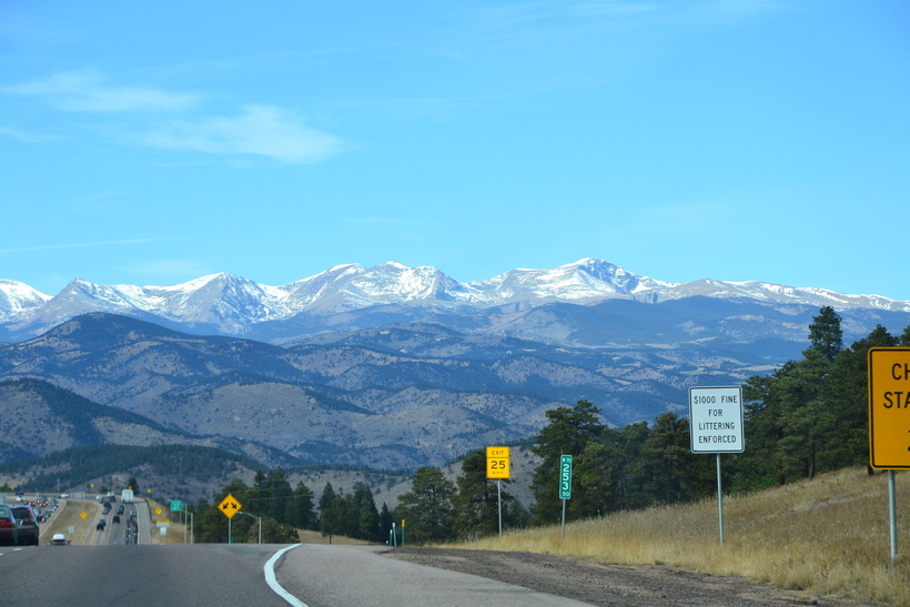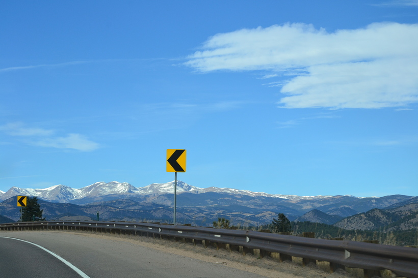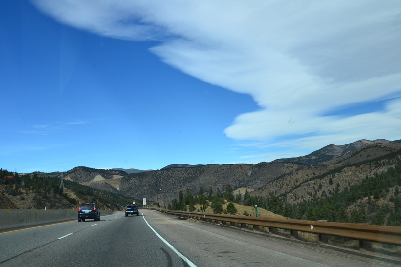 Заехали мы из штата Канзас. И что меня больше всего удивило прям с первых же минут пересечения штатной границы, так это ограничения скорости - в горах разрешено ездить на 20 миль быстрее чем по канзасскому хайвэю, стелящемуся прямой линией. Но к слову, дорожное покрытие действительно позволяет разгоняться на серпантине до 80 миль в час, хотя многие коллеги по трассе превышали сию цифру в несколько раз.