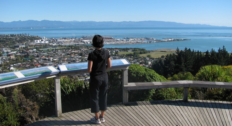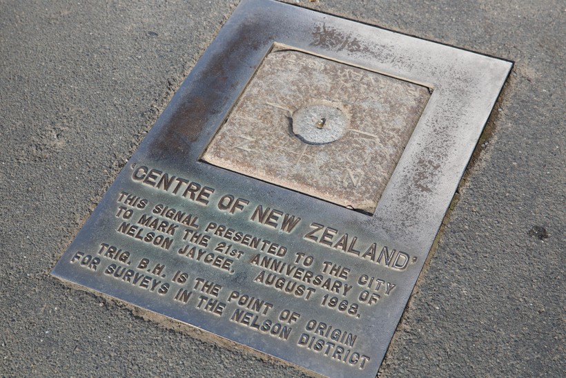 В-четвертых, прогуляться к центру Новой Зеландии. Да, это точно, "нулевой километр" страны находится в Нельсоне. Мечта любого топографа. Находится он в Ботаническом саду на улице Hardy Street. Отсюда потом по тропинке через лес заберись за 15 минут сможешь подняться на холм, откуда открывается прекрасный вид на город.