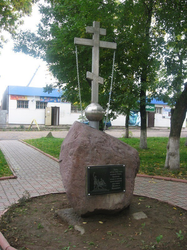 Атмосфера города очень спокойная, но всё здесь очень скоромное, даже парки, например, сквер народного ополчения. Стоят только парочка лавок вокруг памятного камня, на котором висит табличка с Мининым и Пожарским, высится огромный крест.