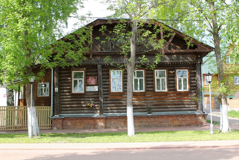 Мы зашли в деревянный неброский с виду дом, на котором только небольшая вывеска даёт знать, что здесь жил известный человек.