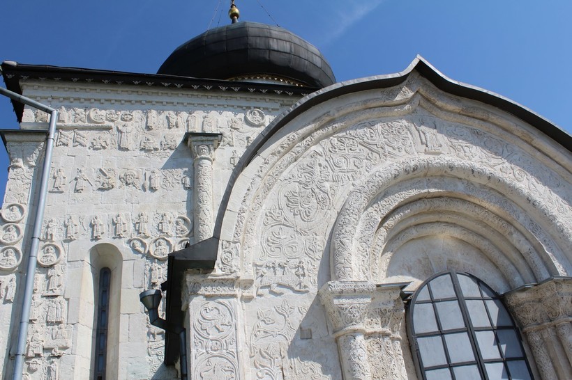 Поразил Георгиевский храм, сохранившийся в городе с 13 века. Говорят, его возвели по велению и под руководством самого князя Святослава. Это самое древнее здание Юрьев-Польского. Его хочется сравнить с Дмитровским храмом во Владимире, и неудивительно. Резной и белоснежный Дмитровский собор был построен отцом князя Святослава и потому стал примером для подражания.
