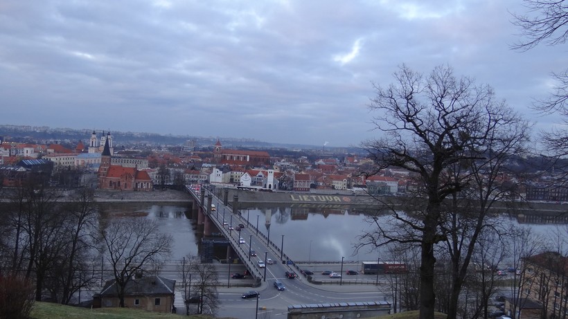 Кстати, самый лучший вид на старый город открывается со смотровой площадки, расположенной на противоположном берегу. Подняться туда можно за 0,9 евро на фуникулере, но, на мой взгляд, в Каунасе этот аттракцион не стоит того, чтобы тратить на него деньги, а на площадку можно легко подняться пешком, благо находится она совсем не высоко.