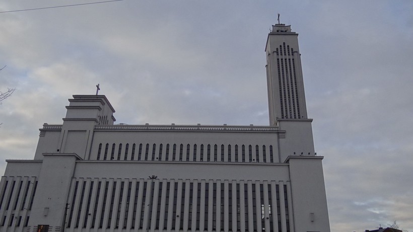 Рядом находятся музей Чюрлениса и военный музей имени князя Витовта, но их я решил отложить до следующего визита в Каунас. А еще неподалеку от Музея чертей находится второй каунасский фуникулер, на котором я ради любопытства даже прокатился. Ведет канатная дорога к костелу Воскресения, который был построен в 30-е годы прошлого века и имеет весьма необычный вид.