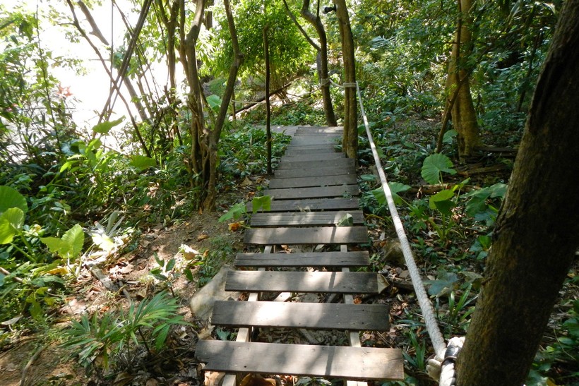 На пляж, конечно, приехать, никак не получится. К нему нужно идти, продлевая на своем пути ступеньки, которые ведут сначала вверх, ну, а после вниз. По дороге несколько раз мне посчастливилось повстречать диких обезьянок. Мартышки встречают туристов и выпрашивают еду. Поскольку животных я боюсь, то без лишних слов и эмоций просто угощала их бананами и уходила.