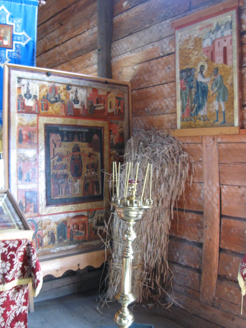 В сентябре внутреннее убранство Покровской церкви было украшено охапками колосьев.