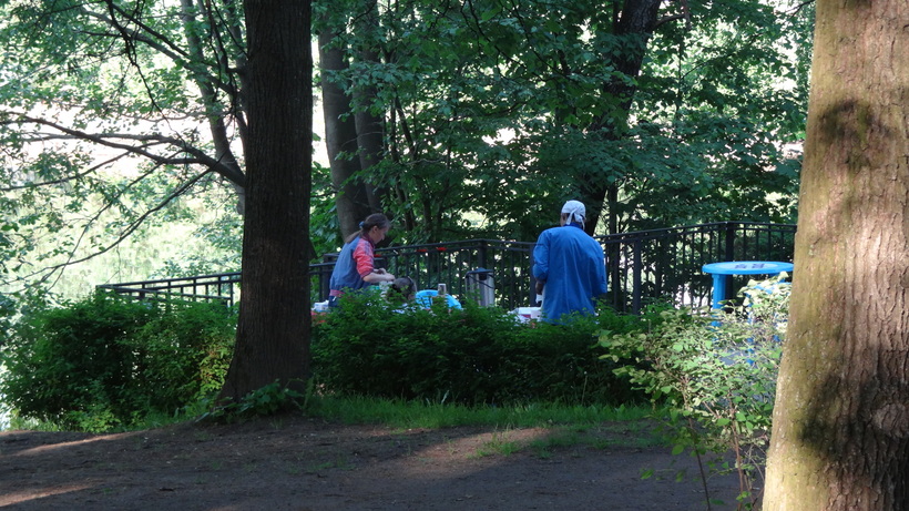 - Пункты питания. Тут две новости: хорошая — что они есть, плохая — они дорогие и некачественные. Кафе в самой усадьбе предлагает посетителям не самую здоровую еду, вроде блинов или пиццы, по не самым демократичным ценам. Кроме того, во время моего посещения в парке компания неприятного вида людей жарила и продавала шашлык. Так как я считаю, что основой обеда должно быть мясо, мы купили у них две порции шашлыка. Точную цену не помню, но помню, что она приближалась к ресторанной, а мясо… было ну просто адски жилистым и жевалось как жвачка. Кроме того, эти же замечательные люди продавали выпечку с максимумом хлеба и минимумом начинки. В общем, невкусная нездоровая еда за большие деньги. А какой-либо альтернативы в опасной близости нет.