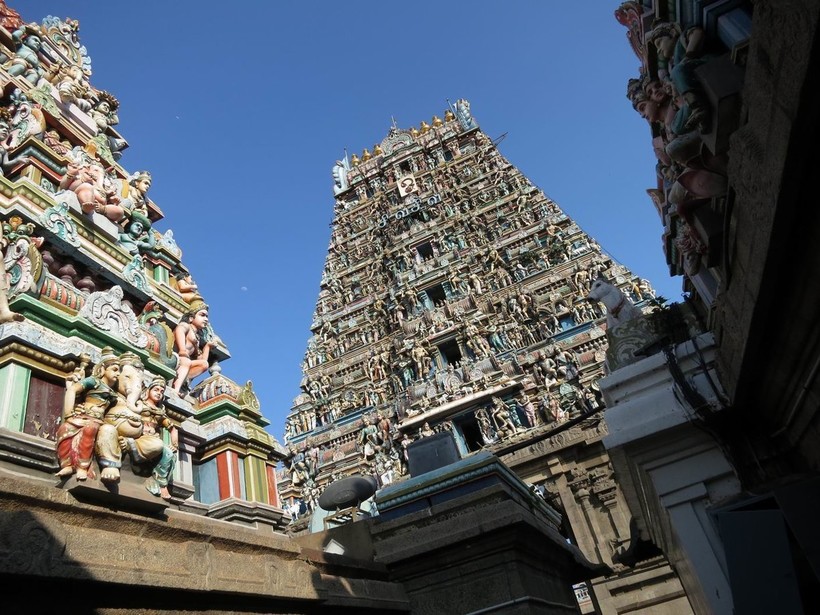 В Чиннаи есть несколько храмовых комплексов: из тысячи храмов, а мы оказались, где семь. Если вы спонтанно туда попали, то нужно приобрести платок за 1.5$.