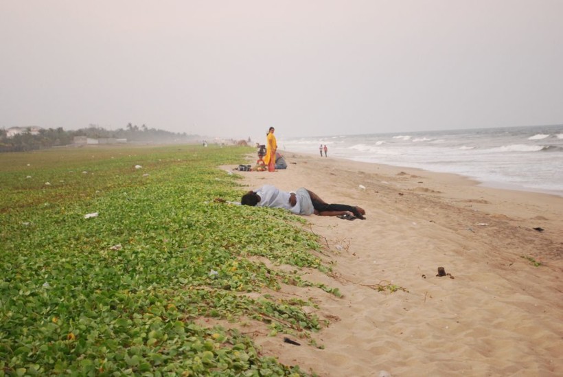 Как я уже рассказывала, пляж очень длинный песчаный. И вроде бы он один и единый, но абсолютно разный. На одном участке даже люди живут прямо у воды, делают какие-то свои постройки из палок и крыши, лодки с сетками, мусора просто тьма-тьмущая! А ещё называется «городской пляж».