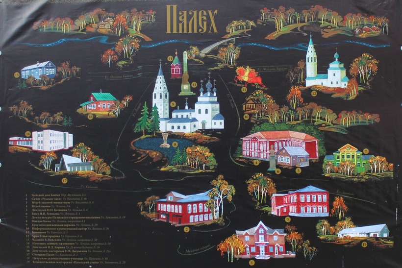 Подробно изучив предварительно список местных достопримечательностей, я составила список тех, где точно хочу побывать. Остальные решила осмотреть по ходу дела. Естественно, больше всего меня интересовала палехская миниатюра. Поэтому я решила, что первым делом посещу музей, ей посвященный, а уж затем примусь за остальные достопримечательности.