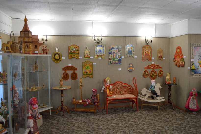 По ходу забежала в Палехский дом ремесел. Здесь есть комната, где собраны личные вещи художника Сафонова, в чьем доме и открыто учреждение. Также здесь много кружков, где дети могут заниматься прикладным творчеством. И, естественно, есть выставка работ мастеров, как зарекомендовавших себя, так и весьма юных. Было интересно, есть весьма оригинальные работы.