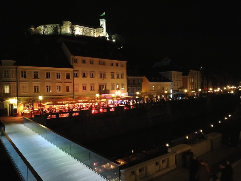 Любляна- город сравнительно небольшой, но очень уютный и чистый. Здесь всё идет своим чередом, люди не спеша идут на работу, а пенсионеры, сидя на лавочках, наслаждаются свежим воздухом. Находиться в этом городе одно удовольствие- хочется сесть за столик на улице, заказать чашечку кофе( или пива) и греться на солнышке. Кстати о пиве- я не пробовал guinness, вкуснее, чем в Словении!! А вот местное пиво- Lasko опишу одним словом- обычное. Что касается еды, рекомендую попробовать осьминога в кляре- очень вкусно! Если затронуть тему еды, то рекомендую перед походом в ресторан хорошенько подготовиться, так как порции там невероятно большие!!