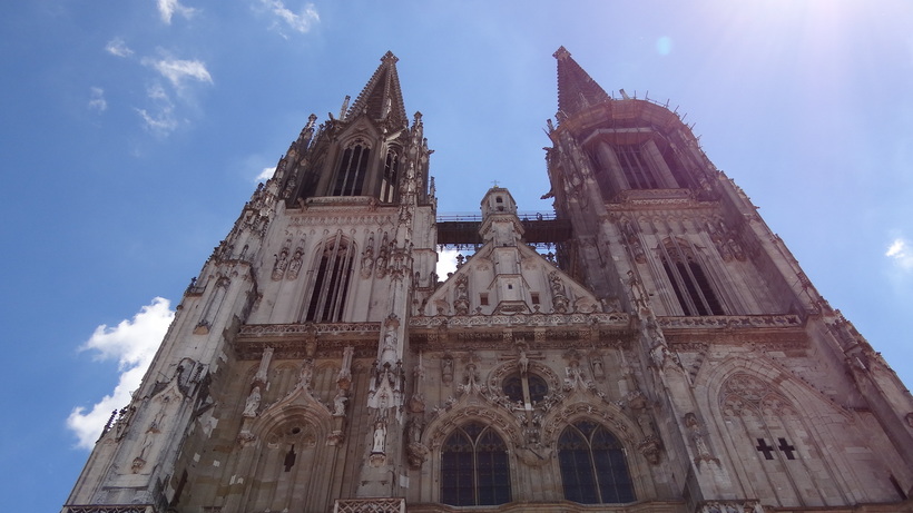 - Собор Святого Петра. Так как годом ранее я побывал в Праге, то поначалу воспринял данный объект несколько пренебрежительно: там, как и в чешских соборах-долгостроях Пражского Града, Вышеграда и Кутны-Горы, фасад и башни появились только в конце позапрошлого века, а строительство шло порядка 600 лет. Между тем, если брать Баварию, то там это один из главных памятников готической архитектуры.