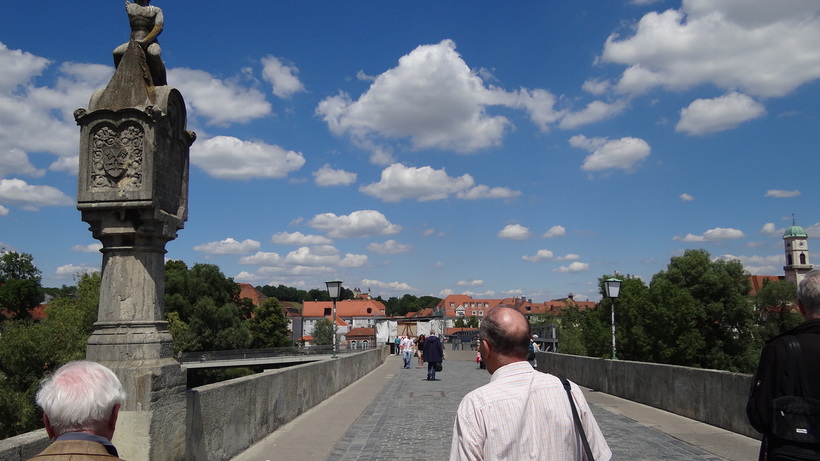 - Дунай и мост через него. Путешествуя по городам, я достаточно быстро стал отмечать, что почти каждый из них стоит на какой-то реке. Со временем я стал обращать внимание, что одна и та же река в разных городах и выглядит по-разному. В Регенсбурге Дунай уже выглядит широким и мощным, но еще не столь внушителен, как на границе Болгарии и Румынии, где длина моста через него составляет порядка километра. Зато регенсбургский мост гораздо старше, чем тот, по которому я два года спустя проехал на автобусе в районе погранперехода Русе. Впрочем, вполне допускаю, что аскетичный каменный мост XII века и не произведет на вас такого же впечатления, как, например, Карлов мост в Праге.