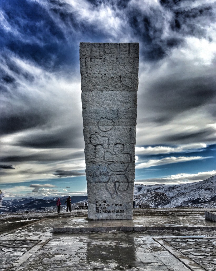 Я была здесь где-то в середине весны, днем было около плюс 25 градусов, но к вечеру температура стремительно падала, часто срывался дождь. Знакомые сербы посоветовали обязательно посетить «Споменик». Это оказался монумент на вершине горы, посвященный погибшим местным партизанам.